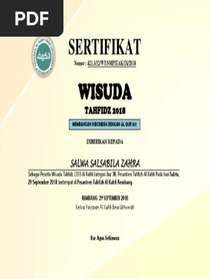 Sertifikat Tahfidz Semester Genap TA 20192020 Labor Tarbiyah Agustus 06 2020 Bagi Mahasiswa FTIK IAIN Batusangkar yang telah lulus Tahfidz Quran Juz 30 Semester Genap TA 20192020 dapat mendownload Sertifikat Tahfidz dengan klik di sini. Berikut ini Contoh Sertifikat yang baik dan benar serta menarik perhatian yang dapat anda gunakan dalam tema maupun format penulisan surat. Sebagai Peserta Wisuda Tahfidz 2018 Al Kahfi kategori Juz 30 Pesantren Tahfizh Al Kahfi Pada hari Sabtu 29 September 2018 bertempat di Pesantren Tahfizh Al Kahfi Rembang.